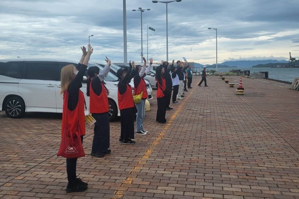 弊社の案内スタッフは、出港するフェリーに向かって手を振りながら見送りを行い、最後の瞬間まで瀬戸内のおもてなしの心を届けました。